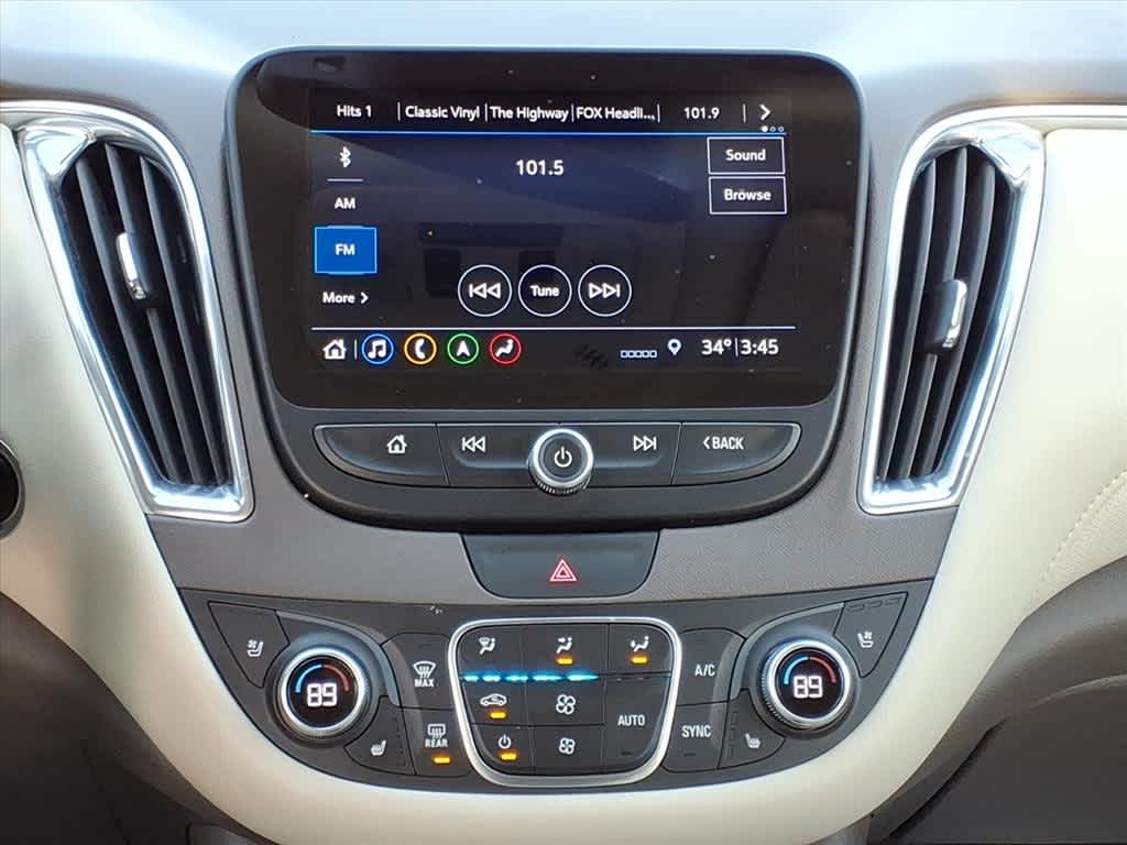 SUN AND WHEEL PACKAGE includes (C3U) power sunroof, (Q82) 19 (48.3 cm) aluminum wheels and (RMI) 245/40R19 all-season, blackwall tires, CONFIDENCE III PACKAGE includes (KSG) Adaptive Cruise Control - Advanced, (UGN) Forward Automatic Braking, (UFQ) Automatic Parking Assist and (J71) electronic parking brake, IRIDESCENT PEARL TRICOAT, DRIVER CONFIDENCE PACKAGE II includes (TQ5) IntelliBeam, (UHX) Lane Keep Assist with Lane Departure Warning, (UE4) Following Distance Indicator, (UEU) Forward Collision Alert and (UKJ) Front Pedestrian Braking, DRIVER CONFIDENCE PACKAGE includes (UD7) Rear Park Assist, (UKC) Lane Change Alert with Side Blind Zone Alert and (UFG) Rear Cross Traffic Alert, LPO, ALL-WEATHER FLOOR LINERS, FRONT AND REAR, AUDIO SYSTEM, CHEVROLET INFOTAINMENT 3 PLUS SYSTEM WITH CONNECTED NAVIGATION, 8 DIAGONAL HD COLOR TOUCHSCREEN, AM/FM STEREO Bluetooth® audio streaming for 2 active devices, Apple CarPlay® and Android Auto® capable, enhanced voice recognition, in-vehicle apps, cloud connected personalization for select infotainment and vehicle settings. Subscription required for enhanced and connected services after trial period. (STD), ENGINE, 2.0L TURBO DOHC 4-CYLINDER SIDI with Variable Valve Timing (VVT) (250 hp [186 kW] @ 5300 rpm, 260 lb-ft of torque [353 N-m] @ 2000-5000 rpm) (STD), TRANSMISSION, 9-SPEED AUTOMATIC (STD). Chevrolet Premier with Iridescent Pearl Tricoat exterior and Dark Atmosphere/ Light Wheat interior features a 4 Cylinder Engine with 250 HP at 5300 RPM*.