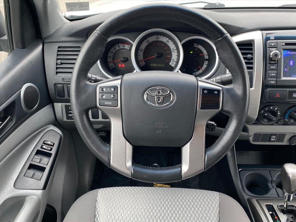 SR5 PKG remote keyless entry, cruise control, variable speed wipers, chrome grille surround & rear bumper, color-keyed front bumper & overfenders, sliding rear window w/privacy glass, SR5 fabric trim, metallic tone instrumental panel, leather-wrapped steering wheel w/audio controls, leather-wrapped shifter, sunvisors w/mirrors & extenders, backup camera & auto-dimming interior mirror w/monitor, exterior temp gauge, SR5 badging. Toyota Tacoma with Silver Streak Metallic exterior and Graphite interior features a 4 Cylinder Engine with 159 HP at 5200 RPM*.